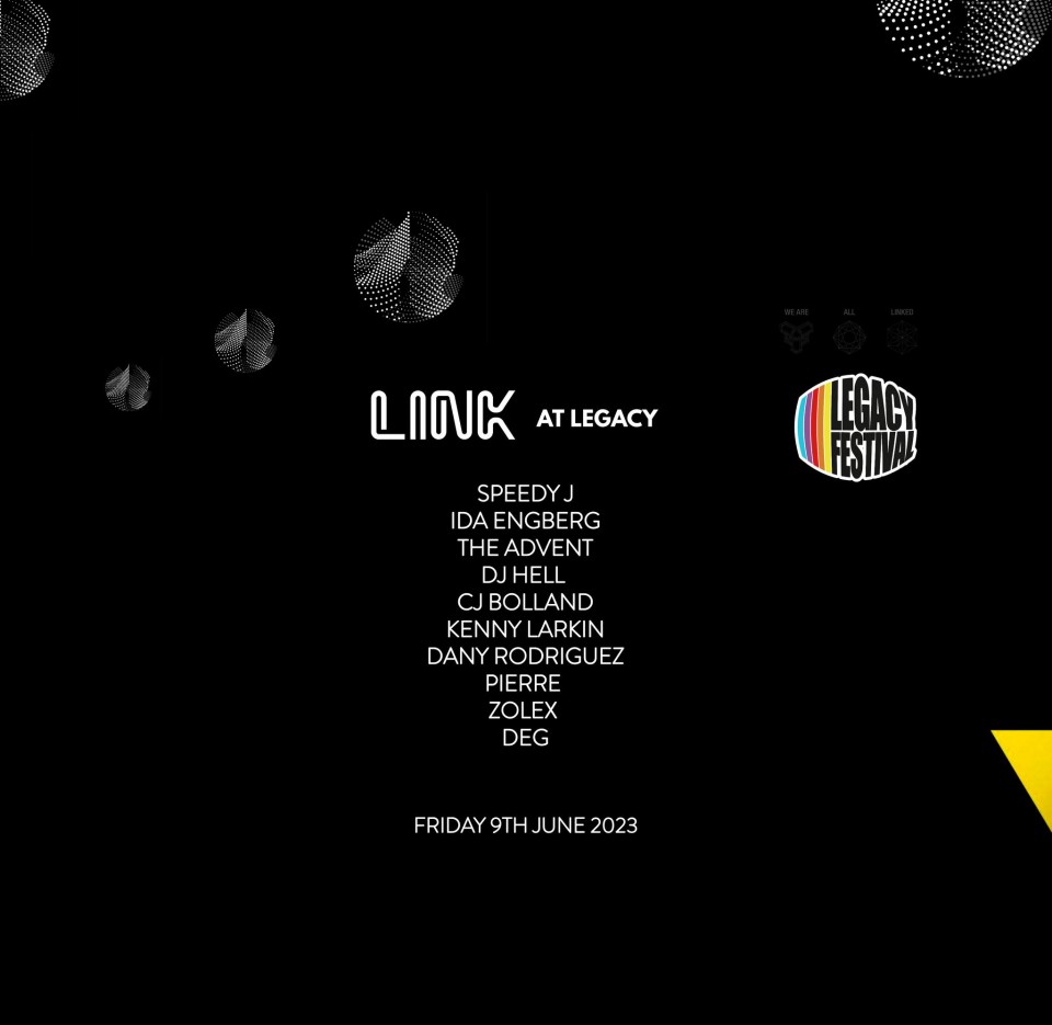 Link Festival stands as a quality event and concept and we’re proud to represent it as an unique Showcase. This summer LINK hits stage at Legacy Festival with the following artists: Speedy J, Ida Engberg, The Advent, DJ Hell, CJ Bolland, Kenny Larkin, Danny Rodriguez, Pierre, Zolex and Deg. Go see!